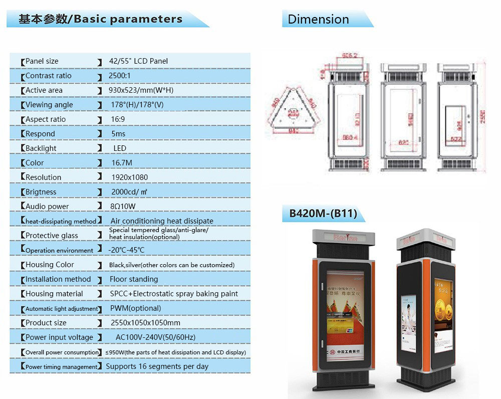 Product details:Outdoor three sided digital information kiosesk